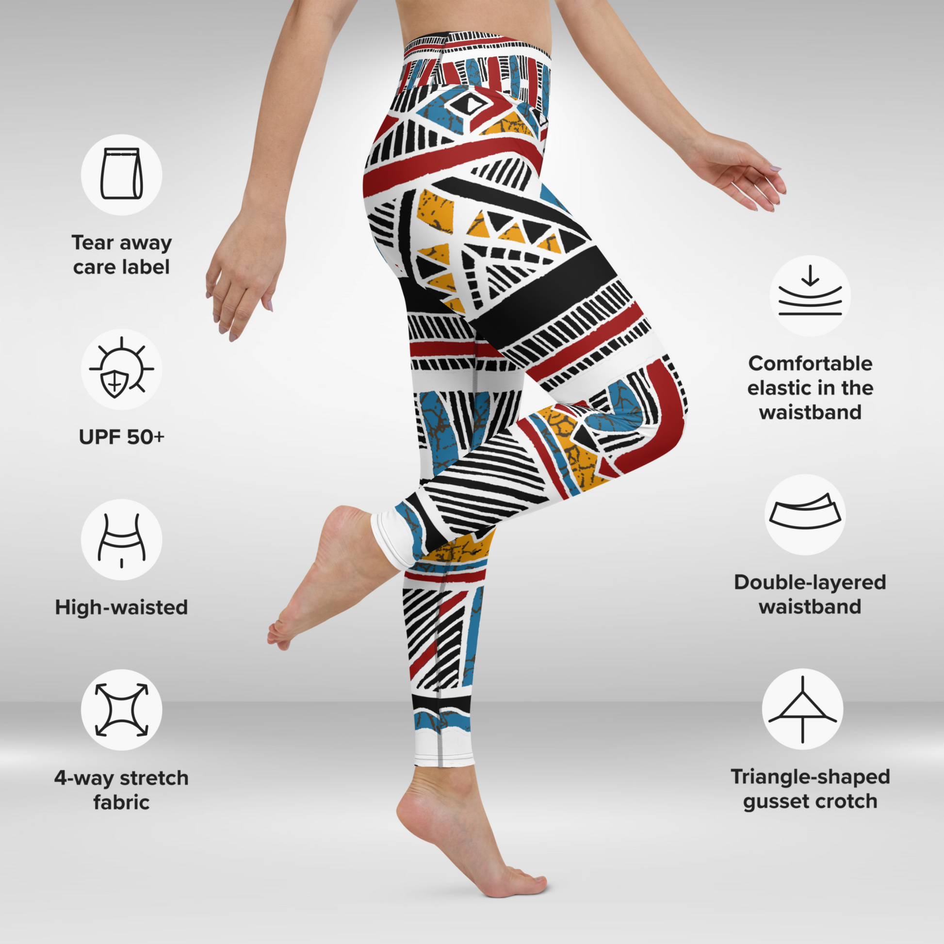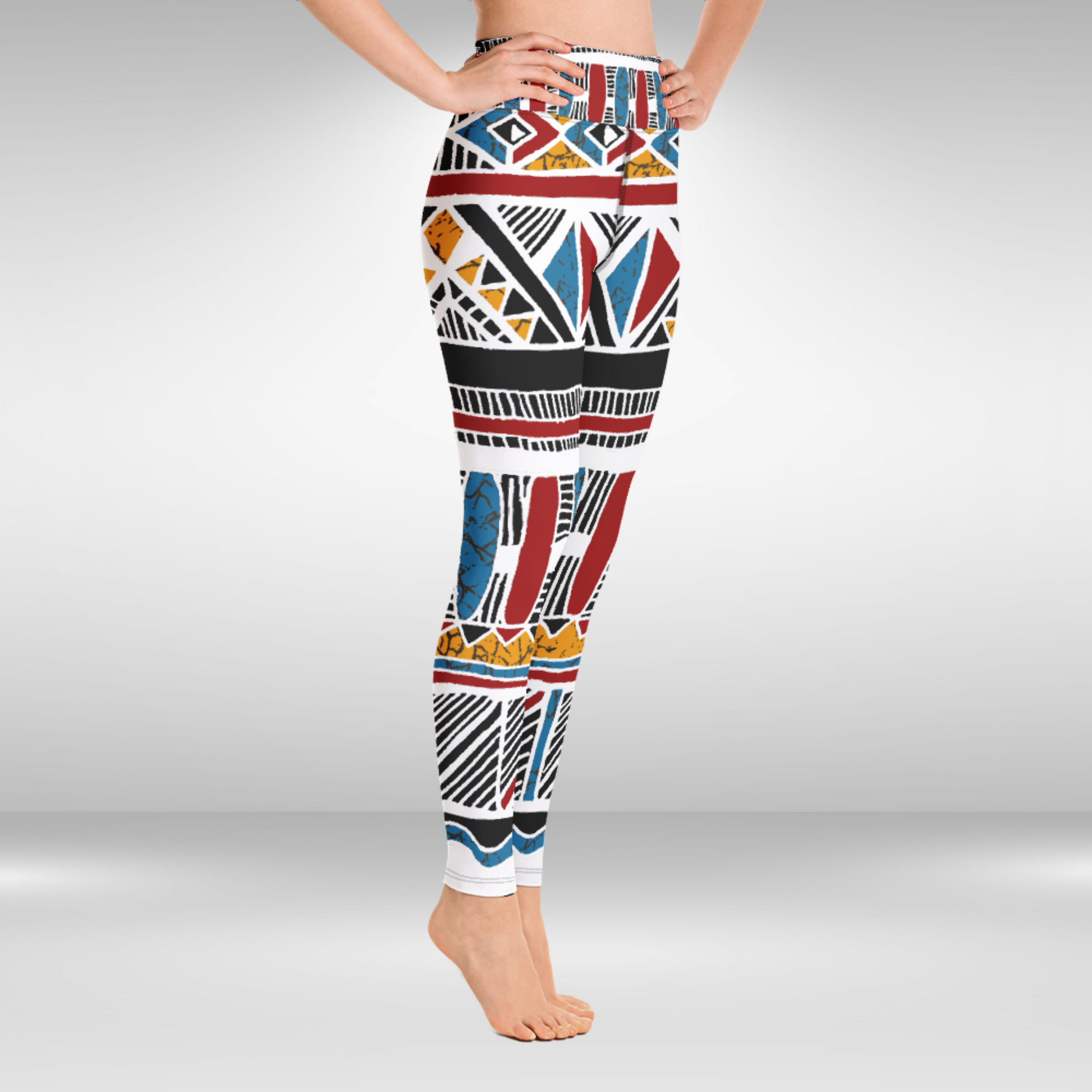 Our tribal pattern leggings will withstand even the most demanding workouts. The high waistband will give a flattering look and a four-way stretch makes these leggings perfect for yoga asana