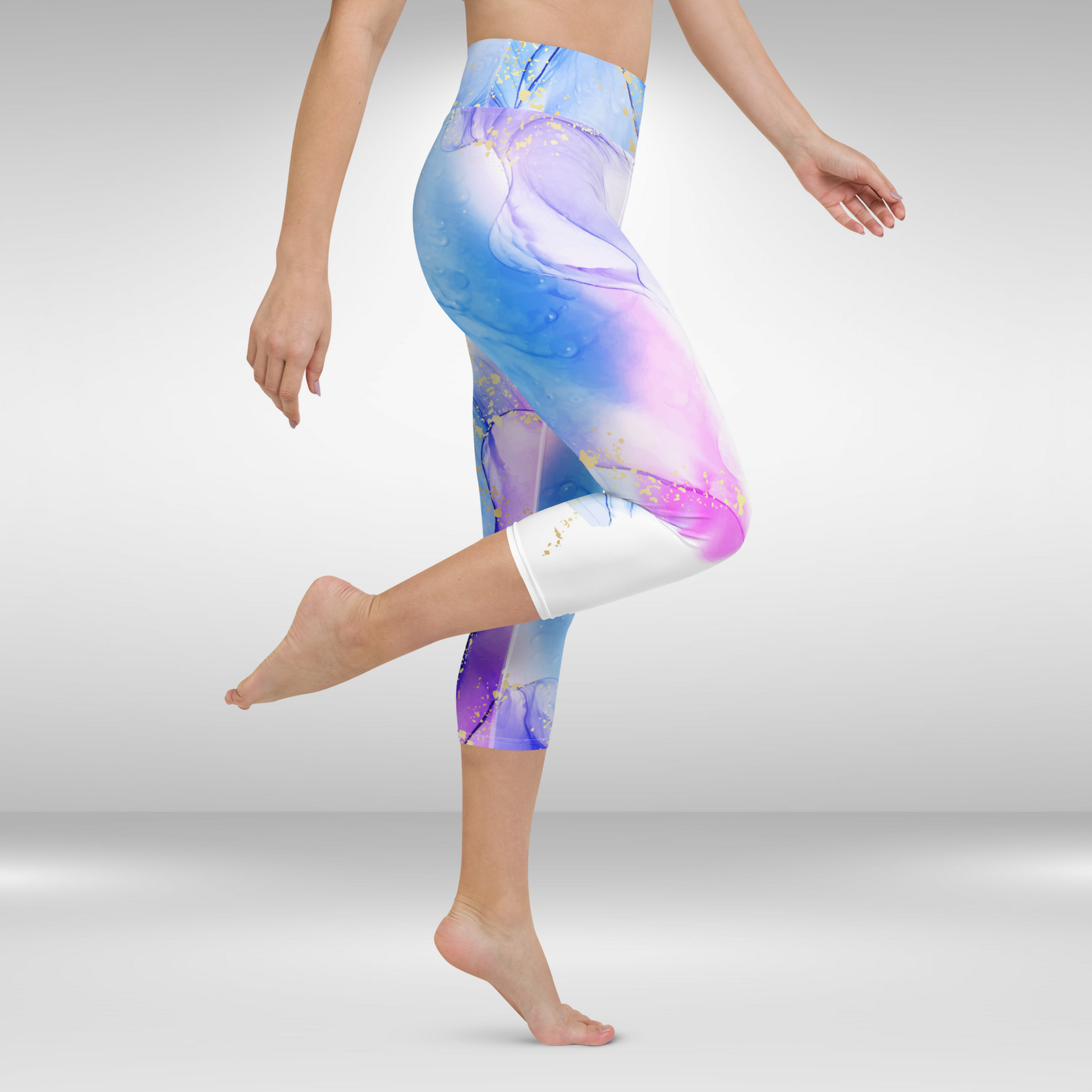 Upgrade your workout wardrobe with these vibrant Women's Capri Leggings featuring an Abstract Water Colour Print. With a high, stretchy waistband and mid-calf length, these leggings offer ultimate comfort. Whether you're practicing yoga, hitting the gym, or just lounging at home, the soft four-way stretch fabric and flat seam will keep you feeling comfortable and stylish. Don't miss out on this must-have addition to your athletic wear collection!