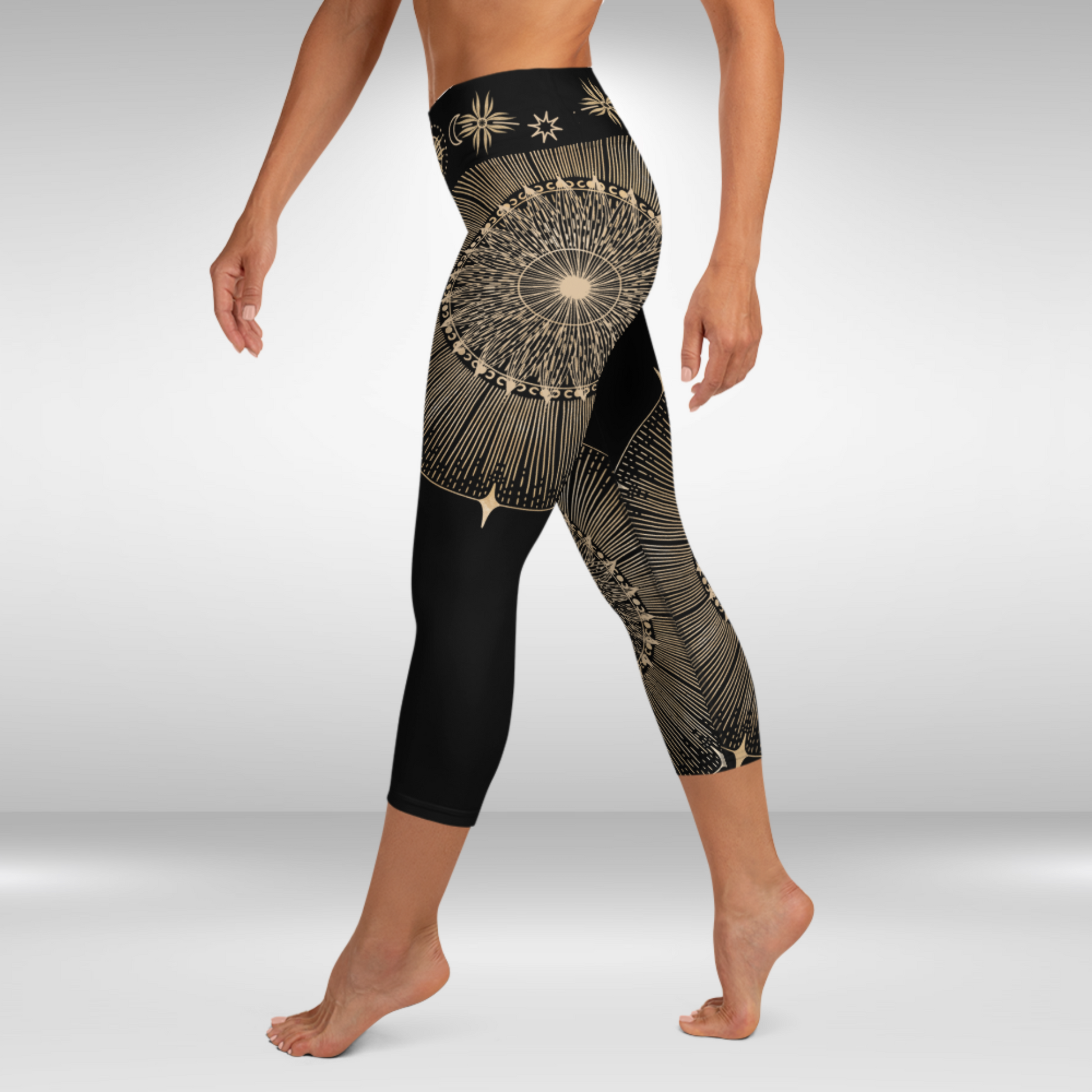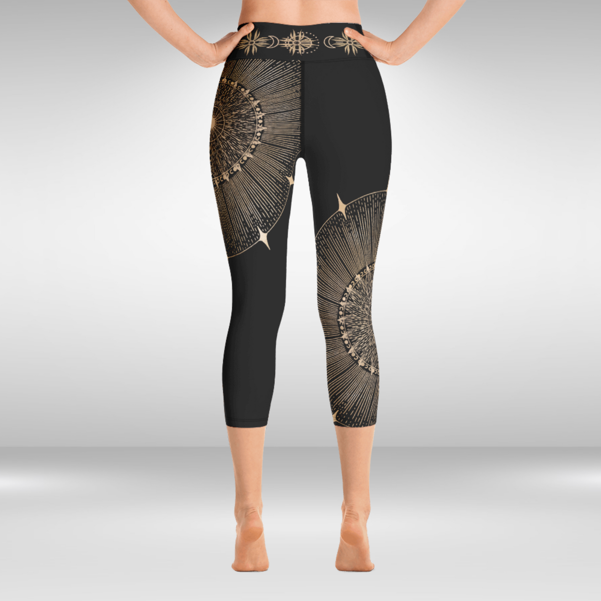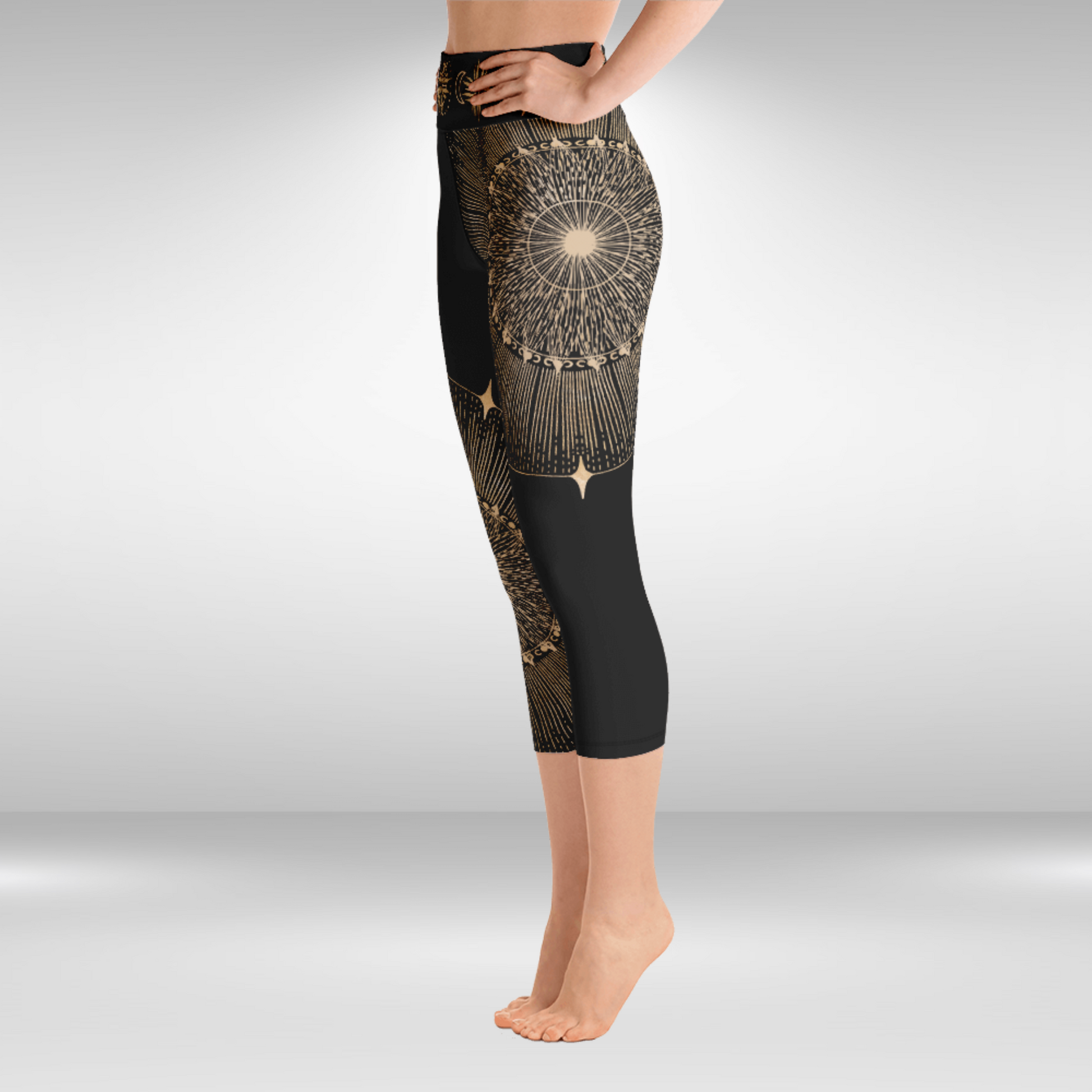 Women Capri Legging - Gold Sun Mandala Print