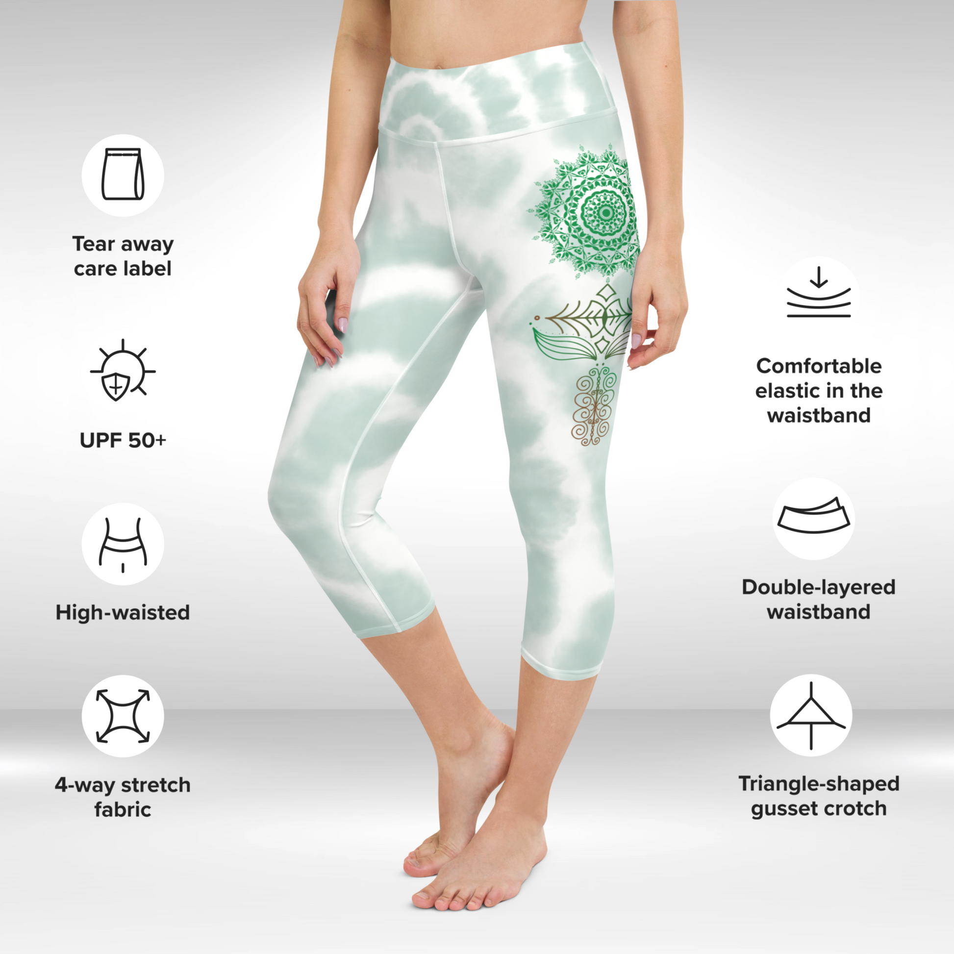 Women Capri Legging - Green Tie Dye Mandala Print