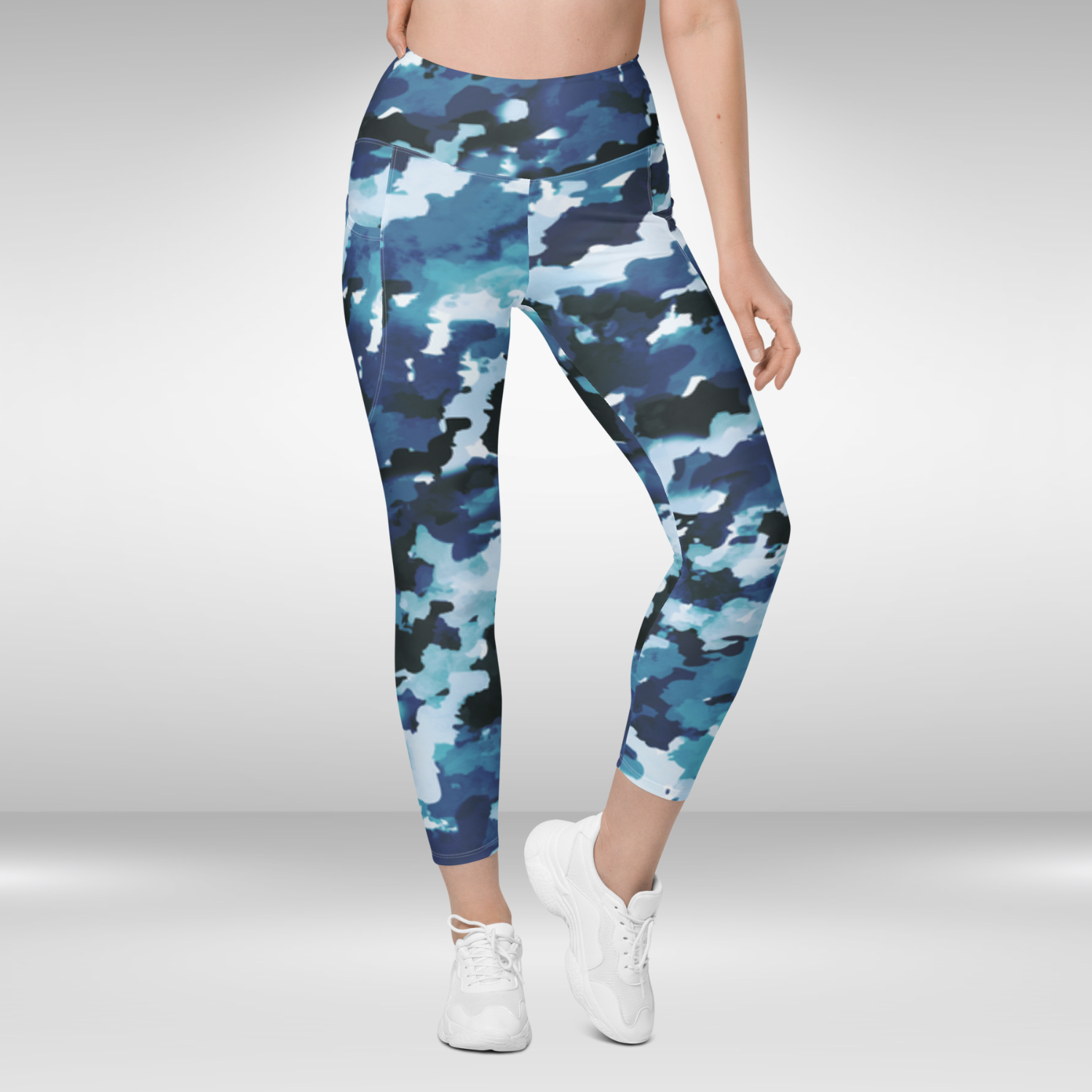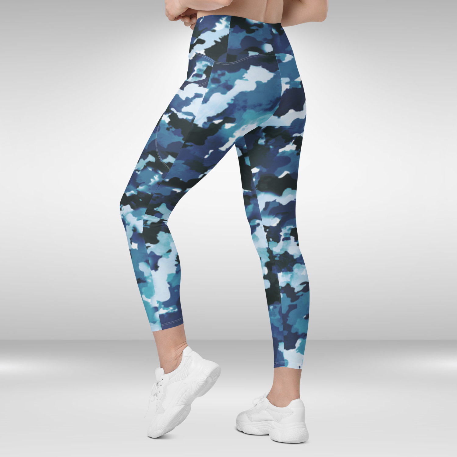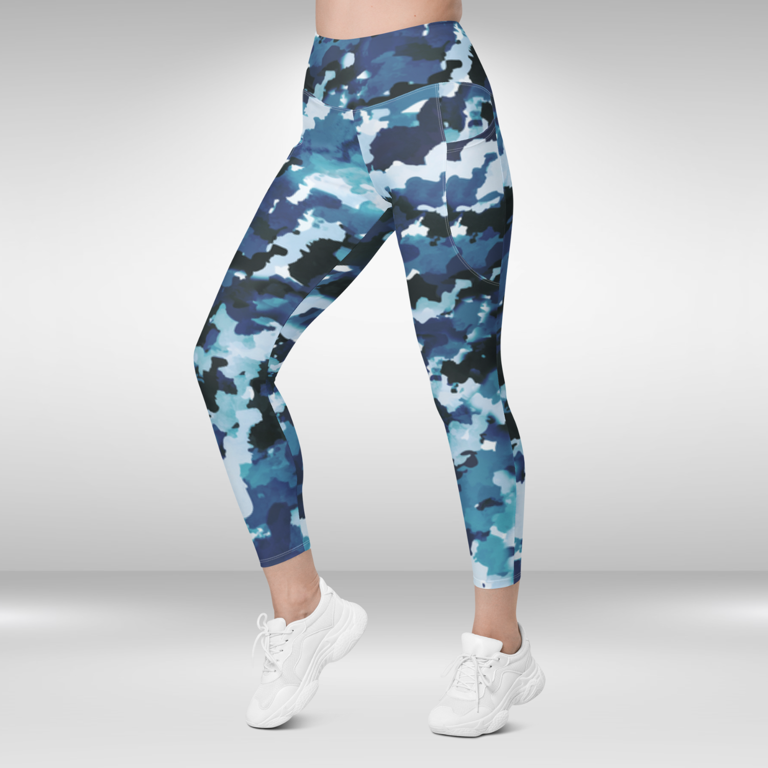 Discover your new go-to pocket leggings in stylish Blue Camouflage Print. With a timeless, high-waisted design, unbeatable comfort, and dual side pockets, these semi-compression leggings will aid you in any activity - from intense workouts to leisurely walks in the urban sprawl. Secure your pair today!