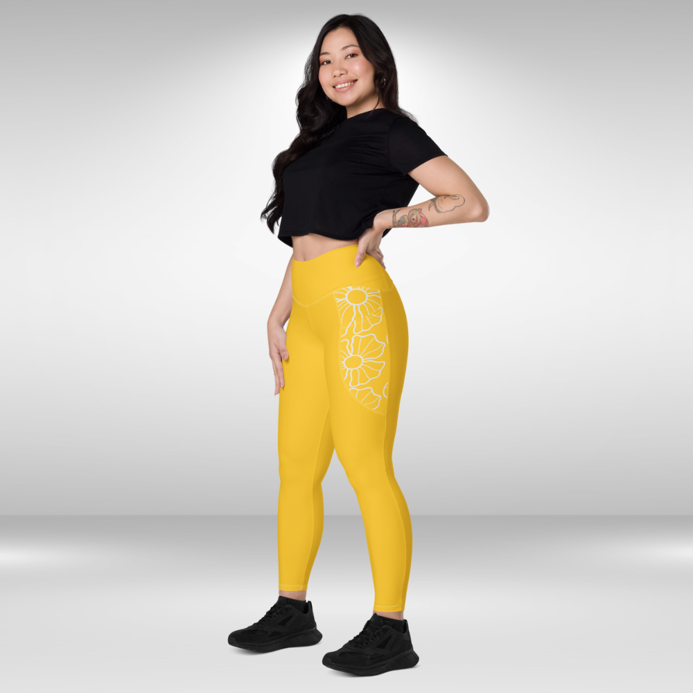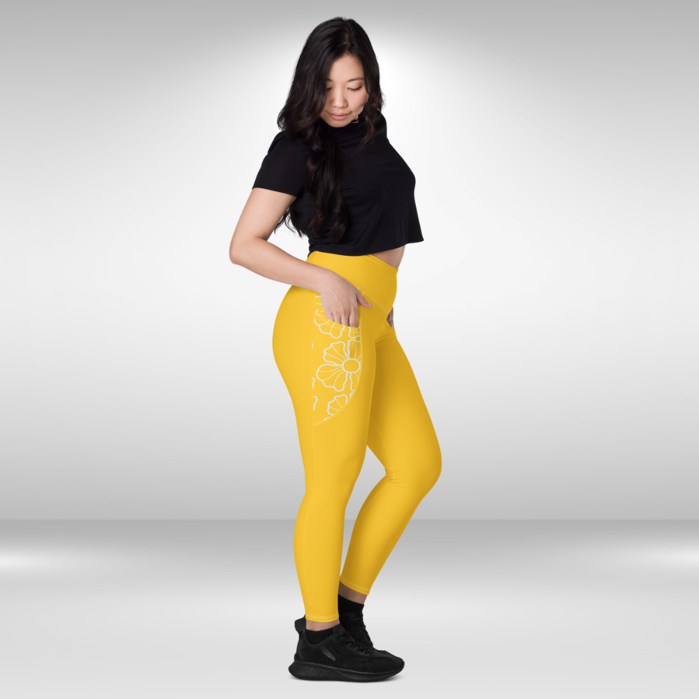 Women Legging With Pockets - Sunburst Yellow Floral Print