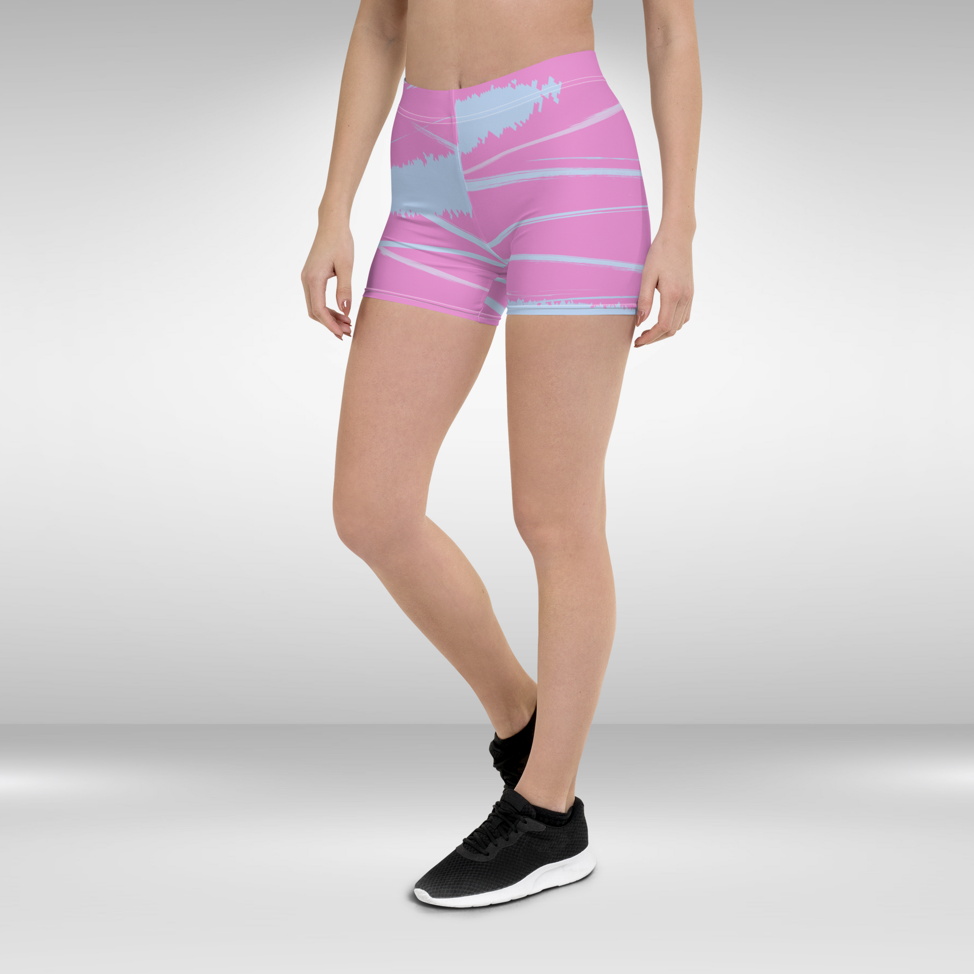 Women Mid Waist Shorts - Pink Blue Abstract Print