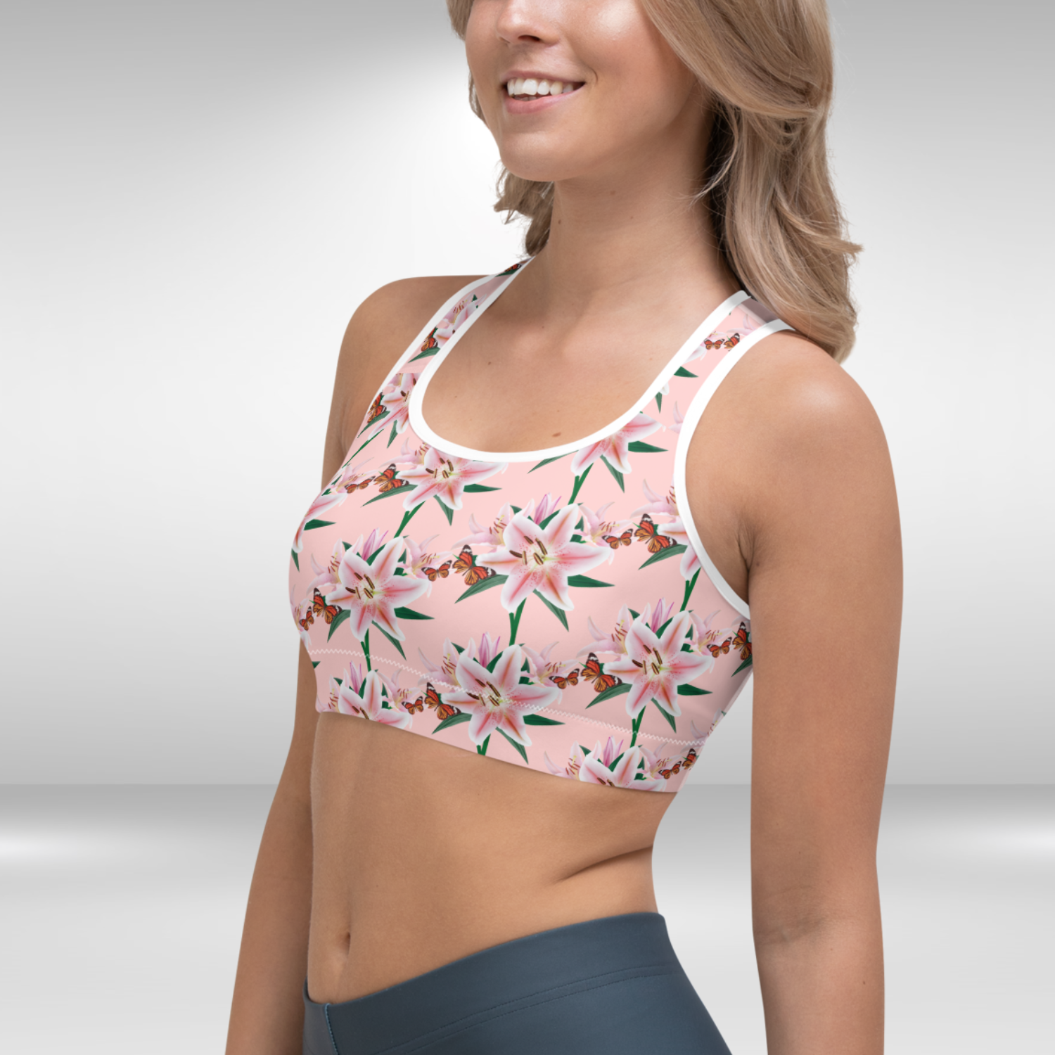 Women Sports Bra - Pink Lily Print